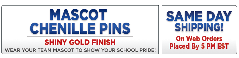 Crown's Gold Tone Chenille Pins Have A Clutch Back And Long Pin For Applying To Jackets, Sweaters Or Chenille Letters. These Exclusive Mascot Pins Are Sold In Packages Of 10 Per Style. Order Our Chenille Pins Today And All In Stock Items Ship Immediately.