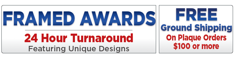 As America's largest awards manufacturer with over 40 years experience, Crown's Framed Awards will fit your award plaque gift-giving needs whether your budget is large or small. We provide our customers with superior customer service and the highest quality products at the lowest prices available, making us your awards manufacturer of choice.