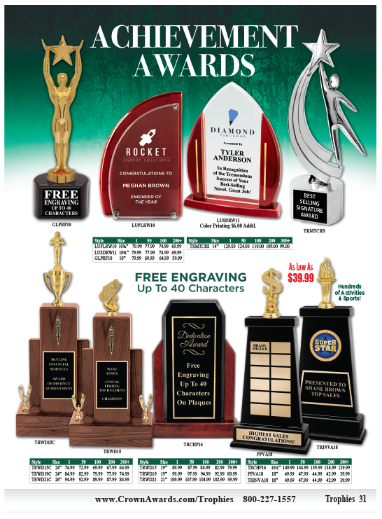 Metal Performance Award Rosewood Floating Acrylic Rosewood Slide-In Acrylic Crown Signature Metal Star Trophy Walnut Championship Trophy Walnut Trophy Champion Glossed Wood Trophy Varsity Trophies