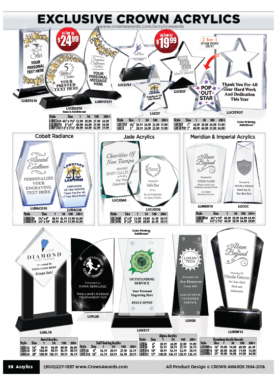 Starry Skyline Acrylics Star Acrylics Cobalt Radiance Jade Tone Imperial Classic-Cut Acrylic Jade Tone Imperial Octagon Acrylic Meridian Acrylic Imperial Ocean Acrylic Aerial Acrylic Sail Floating Acrylics Alpine Floating Acrylic Awards Broadway Acrylic Awards
