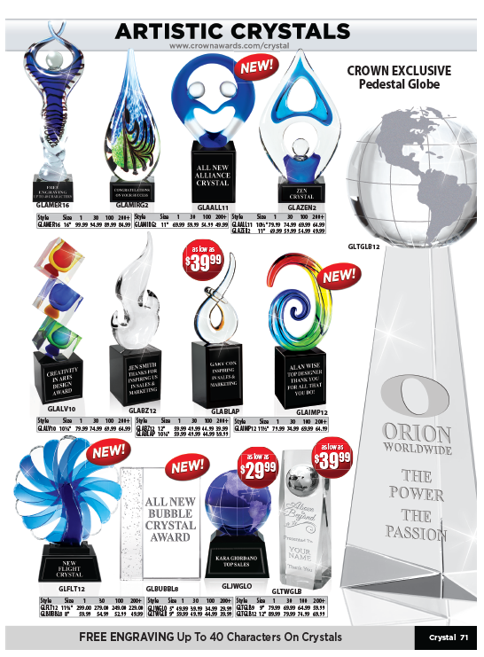Artistic Crystals Flight Crystal Twilight Globe Jewel Crystal Globe Tower Crystal Tri-Pedestal Globe Crystals