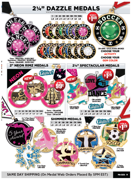 Dazzle Medals Neon Rimz Medals Spectacular Medals Shimmer Medals